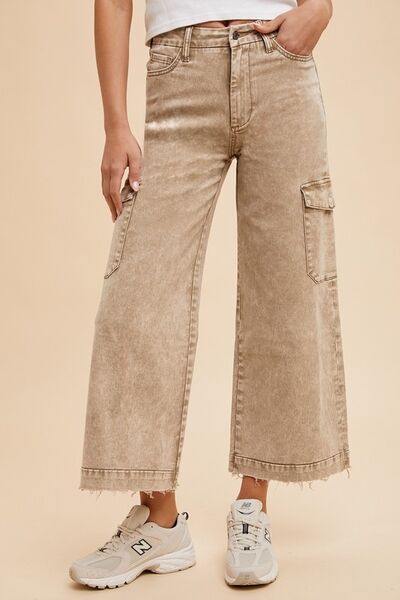 Annie Wear Raw Hem Wide Leg Jeans with Cargo Pockets