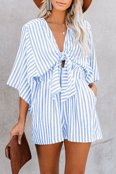 Bow Striped Kimono Sleeve Romper
