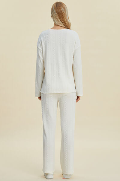 Double Take Full Size Cable-Knit Long Sleeve Top and Pants Set