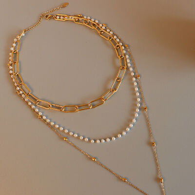 Synthetic Pearl Titanium Steel Three-Layered Necklace